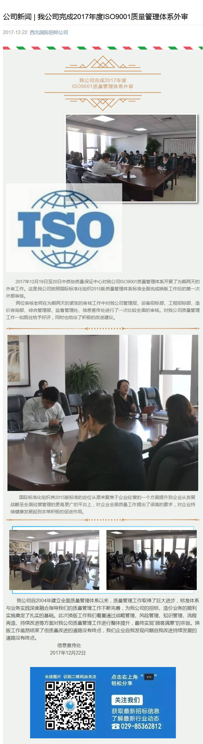 我公司完成2017年度ISO9001質(zhì)量管理體系外審
