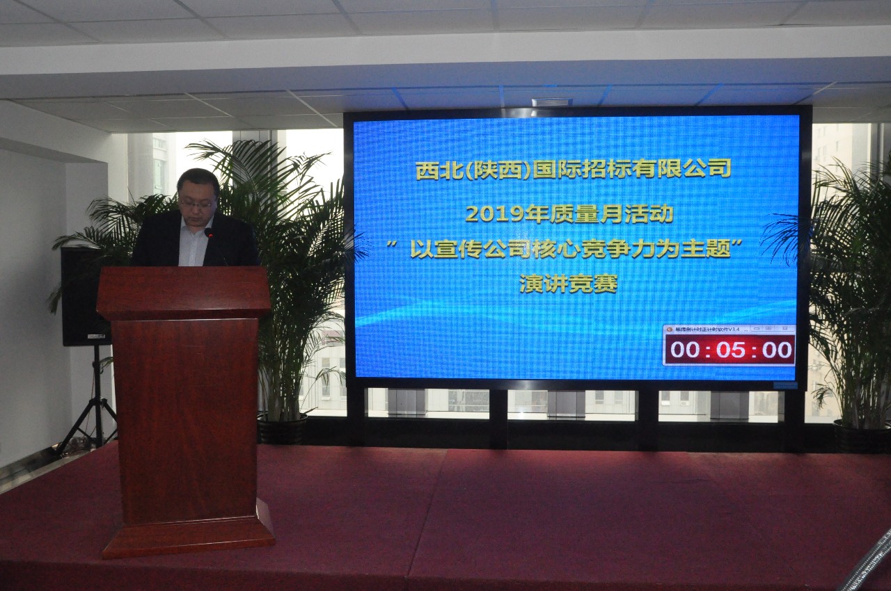 為進一步提升“西北(陜西)國際招標有限公司”的品牌價值,全面貫徹“以招標采購為龍頭,以全過程造價控制為核心,以合同管理為重點,以現(xiàn)場精細化管理為基礎(chǔ)”的公司發(fā)展戰(zhàn)略,2019年3月22日,公司質(zhì)量月活動的第四周,由綜合監(jiān)督管理處組織的“以宣傳公司核心競爭力為主題”的演講競賽如期舉辦。
