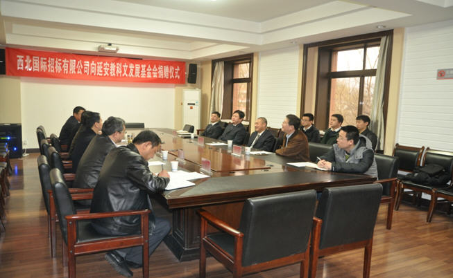 張金鎖校長(zhǎng)介紹了延安大學(xué)相關(guān)歷史及現(xiàn)狀,并對(duì)西北國(guó)際招標(biāo)公司對(duì)延安科教文發(fā)展給予的支持表示衷心的感謝。戈總表示,為促進(jìn)延安教科文發(fā)展基金會(huì)各項(xiàng)事業(yè)的順利實(shí)施,以及從戰(zhàn)略高度和長(zhǎng)遠(yuǎn)發(fā)展需要出發(fā),我們希望通過(guò)這次合作建立多層次、高水平的校企合作關(guān)系,達(dá)到優(yōu)勢(shì)互補(bǔ)、共同發(fā)展的目的!