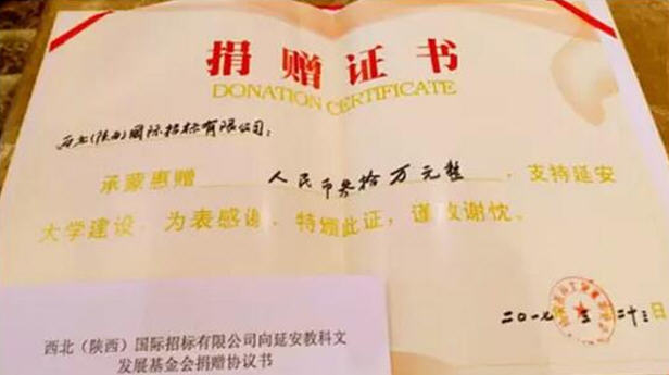 我公司向延安教科文發(fā)展基金會(huì)捐款