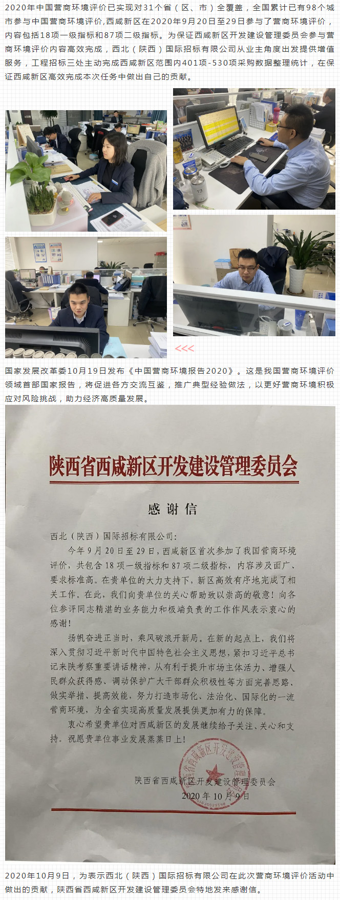 陜西省西咸新區(qū)開發(fā)建設(shè)管理委員會(huì)向我公司發(fā)來感謝信