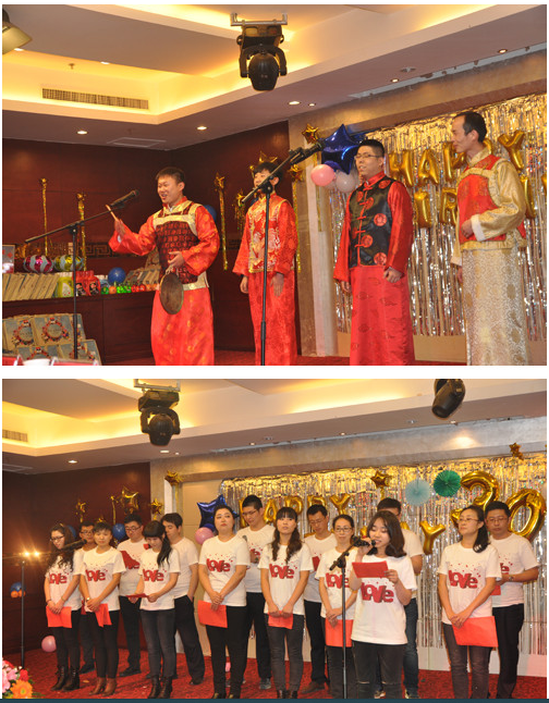 主持人侯潤澤 、常樂宣布演出開始,辦公室張琦以一曲慷慨激昂的男聲獨(dú)唱《中國人》首先登場。緊接著設(shè)備部的小合唱《我相信》和《明天會(huì)更好》點(diǎn)燃了全場觀眾的情緒,大家被團(tuán)結(jié)和積極向上的氛圍感染。造價(jià)部胡建輝、謝新、李珂、張翔宇的三句半《說造價(jià)》用詼諧而生動(dòng)的陜西方言道出了造價(jià)工作的艱辛與樂趣;楊大衛(wèi)的小號(hào)表演優(yōu)美動(dòng)聽;詩朗誦《牽動(dòng)造價(jià)舞動(dòng)人生》則以高昂的情懷抒發(fā)了造價(jià)人對造價(jià)工作的熱愛。財(cái)務(wù)室常樂帶來的古典舞蹈《驚鴻舞》將觀眾帶入到一個(gè)優(yōu)美而婉約的意境中;劉卿和李偉合作的小提琴吉他伴唱《當(dāng)你老了》深情動(dòng)人。工程部的小品《小璐超級(jí)訪問》和楊東峰的魔術(shù)《分不清左右》充分展現(xiàn)了年輕人的才華,包袱疊起,讓人捧腹不止。抽獎(jiǎng)與游戲環(huán)節(jié)更是讓觀眾熱情高漲,八十位同志有幸在此環(huán)節(jié)中獲得一、二、三等獎(jiǎng)。晚會(huì)最后以一曲《相親相愛》結(jié)束。