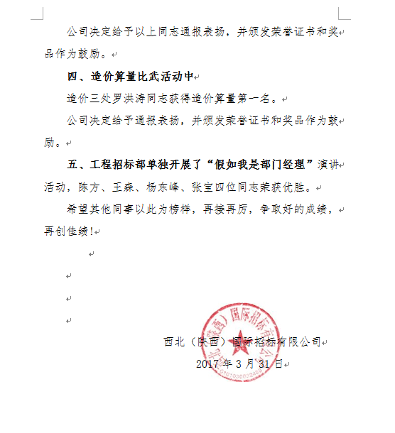2017年度質(zhì)量月活動(dòng),公司集中開展了:“ISO9001新版宣貫”、“政府采購(gòu)相關(guān)政策和法規(guī)的宣講”、“審計(jì)工作的培訓(xùn)”、“新員工入職系列培訓(xùn)”、“造價(jià)制度宣貫”;“政府采購(gòu)政策考試”、“案例分析”、“造價(jià)算量比武”、 “模擬開標(biāo)技術(shù)比武”; “假如我是部門經(jīng)理”、“踐行公司企業(yè)文化一年來體會(huì)、心得演講”等一系列活動(dòng)。