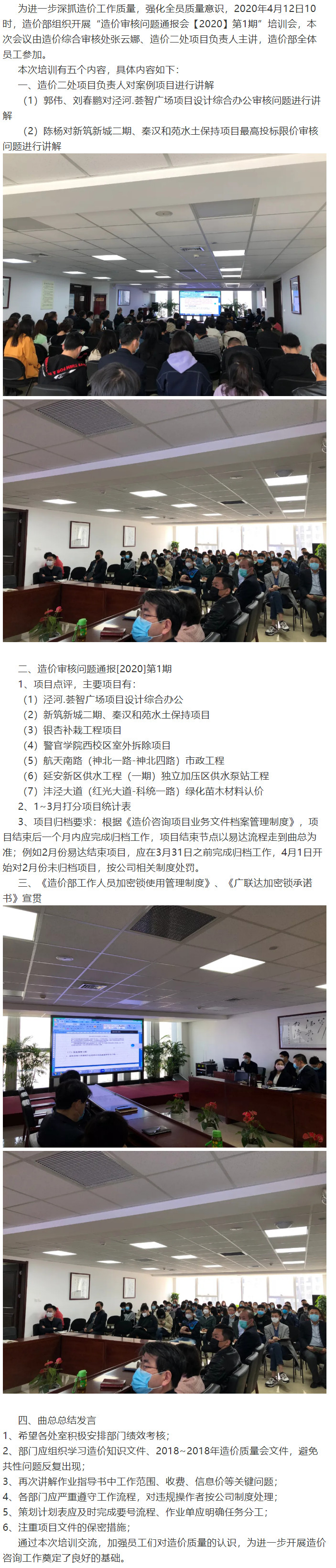 公司造價部組織開展“造價審核問題通報會【2020】第1期”培訓(xùn)會