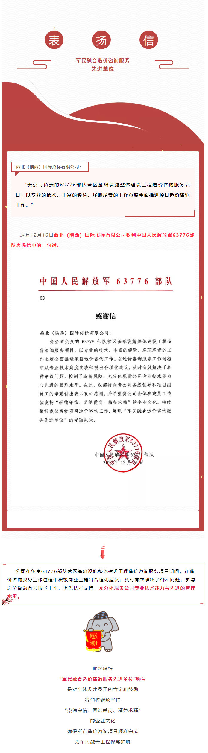 祝賀!公司喜獲“軍民融合造價(jià)咨詢服務(wù)先進(jìn)單位”稱號(hào)
