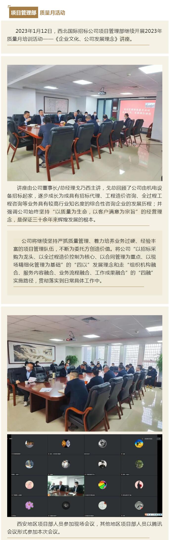 西北國際招標(biāo)公司項(xiàng)目管理部舉行2022年度總結(jié)會(huì)暨“質(zhì)量月”活動(dòng)啟動(dòng)會(huì)